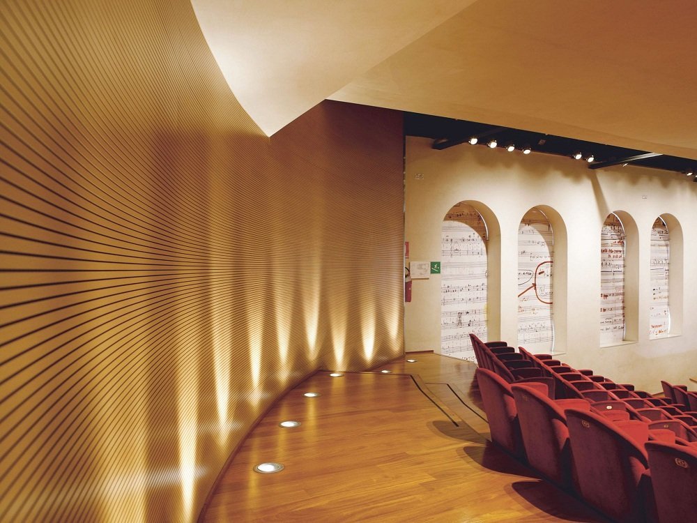 Akustik ahşap duvar panelleri, konferans salonları, kongre merkezleri, toplantı odaları ve lobiler gibi alanlarda hem estetik hem de akustik performans sağlayan özel tasarım panellerdir. Doğal ahşap görünümü ile dekoratif bir çözüm sunarken, delikli yapısı sayesinde ses yalıtımı ve akustik düzenleme amacıyla kullanılmaktadır.